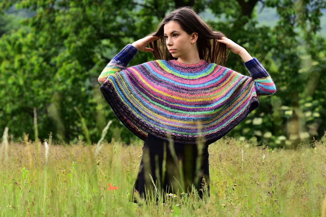 No 11 Colourfull Poncho Jumper Hand Knit Womens Etsy